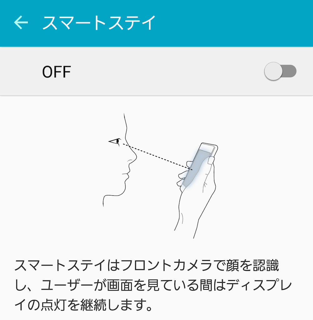 これはサムスン機ならではの機能で前からあるものですね。インカメラで顔を認識し、見ている間はスリープにならないという機能で、地味に便利です。