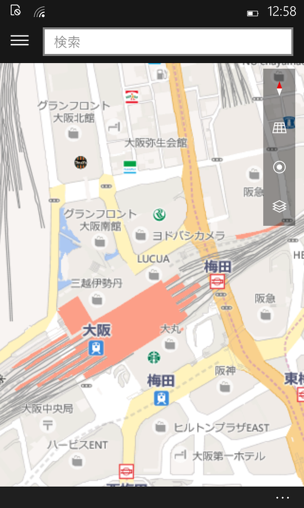 地図アプリはNokiaのHEREマップからBingマップに変更されており、日本国内の地図の見やすさが格段にアップしました。画像がやや粗いのが気になりますが嬉しい進化です。