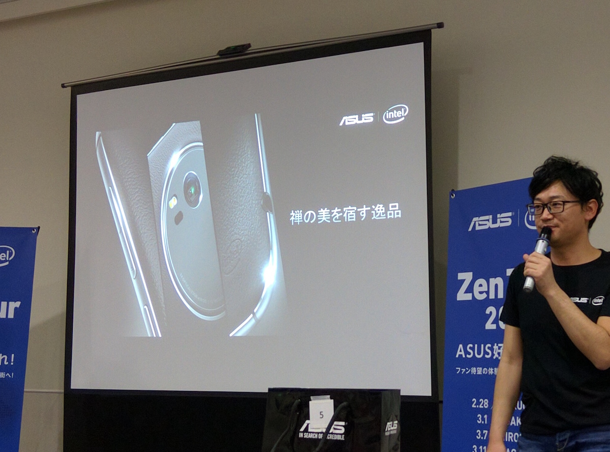 Zenfone Zoomは「工芸美」「鷹ノ眼」「性能怪獣」の3つを備えるスマートフォンで、まずは工芸美から。今までのZenfoneシリーズは本体にプラスチックを多く使用していましたが、今回のZoomはフレームにアルマイト加工を施した金属を採用し、プレミアム感を演出しています。