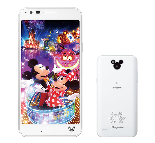 本体表面下にミッキーの形をしたスワロフスキークリスタルのストーンをあしらい、背面下にもミッキーとミニーのラインアートがあるなどディズニーの世界をそのまま表現したスマートフォン。