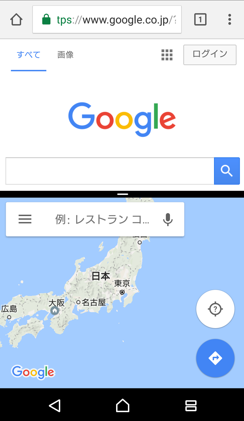 マルチウィンドウと言っても上下に別々のアプリを分割表示出来る程度。いちいちアプリを切り替えなくても、同じ画面で2つのアプリを同時に操作出来るので、例えばLINEしながらブラウザで調べ物、なんて使い方が可能になります。