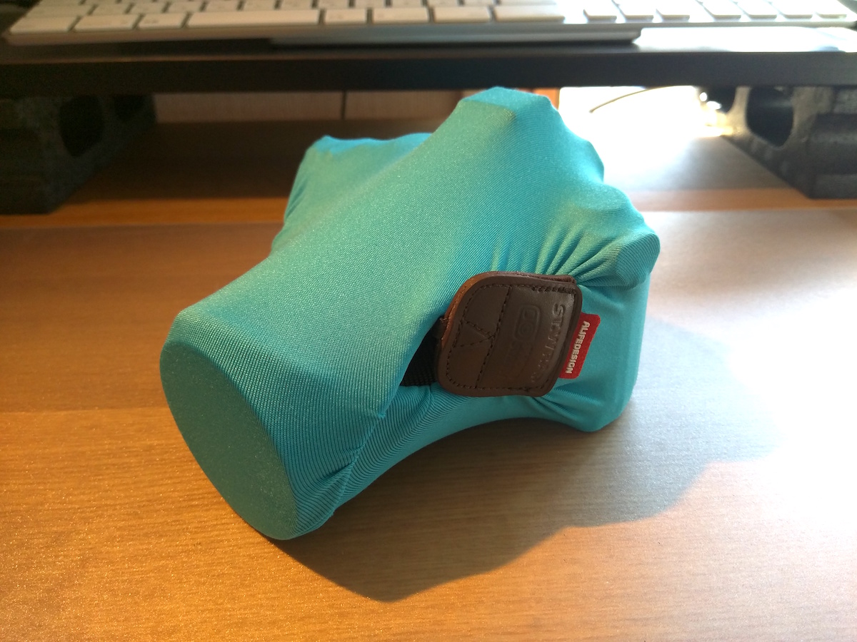 ただ残念なのが伸縮性のある素材ゆえに、何十回も使用するとリストバンド部分がブヨブヨに伸びてしまう可能性があること。写真のように長いレンズを付けている状態だと数回で伸びてしまいそうな感じ。カバーとして使えるのは機種が限られると思います。