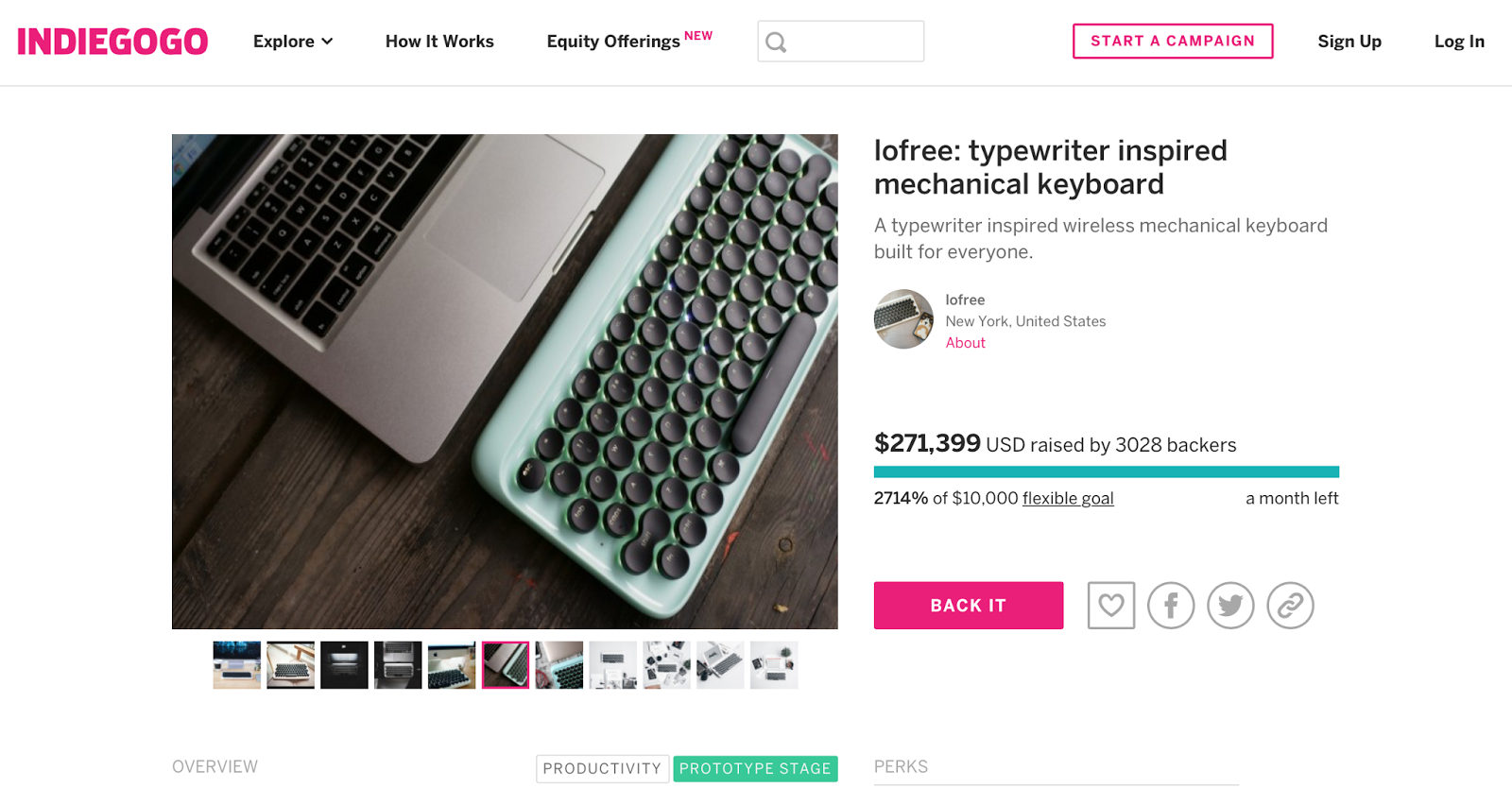 タイプライター風のメカニカルキーボード「lofree」を先日取り上げましたが、せっかくなので出資してみました。