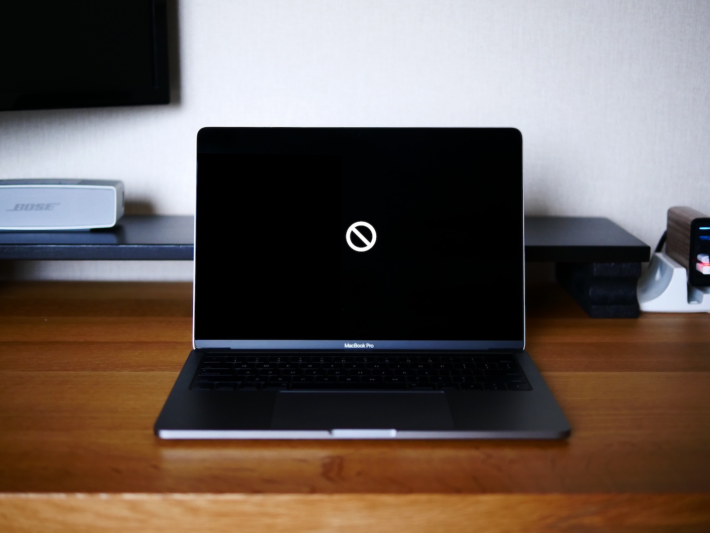 Appleロゴの代わりに、円にスラッシュが付いたマークが表示される場合は、起動に必要なシステムフォルダが検出されなかったという意味です。